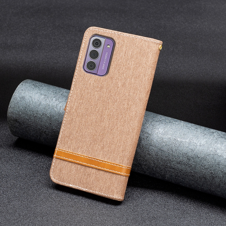 Funda de Cuero para Nokia G42/G310 con Tapa Horizontal y Textura de Mezclilla (Marrón)