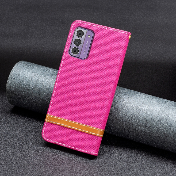 Funda de Cuero para Nokia G42/G310 con Tapa Horizontal y Textura de Mezclilla (Rosa Roja)