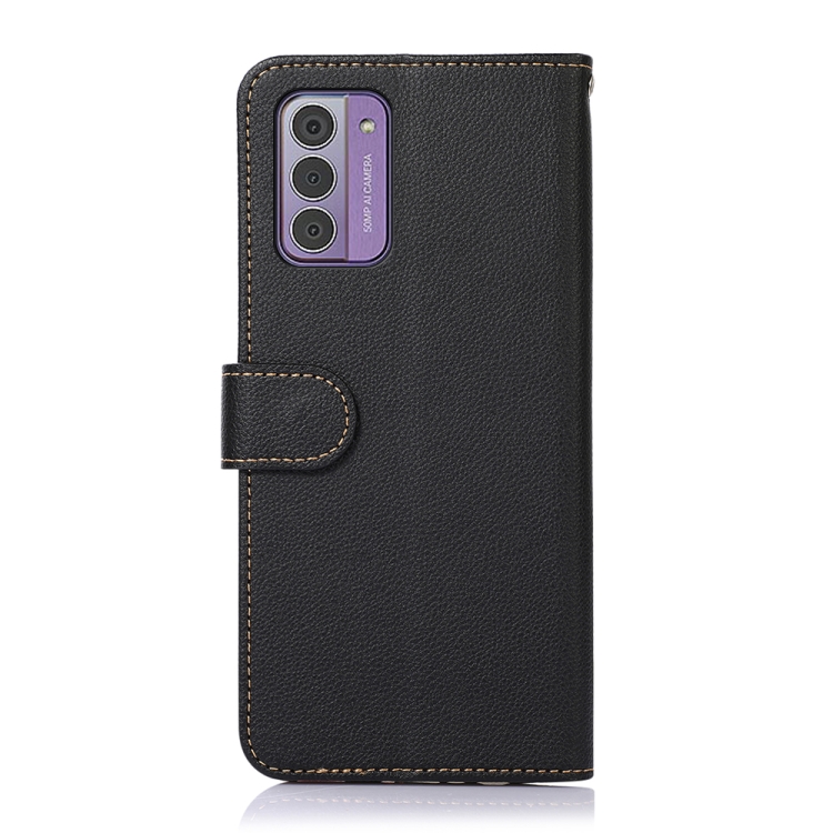 Funda para Nokia G42 Khazneh con Textura Litchi de Cuero y Protección RFID (Negro)