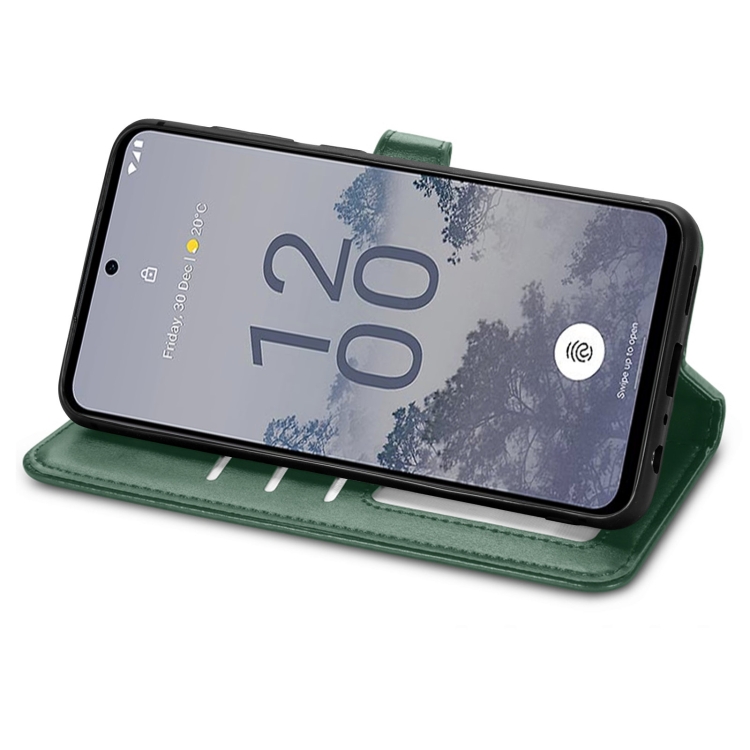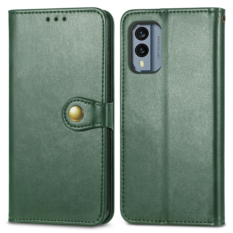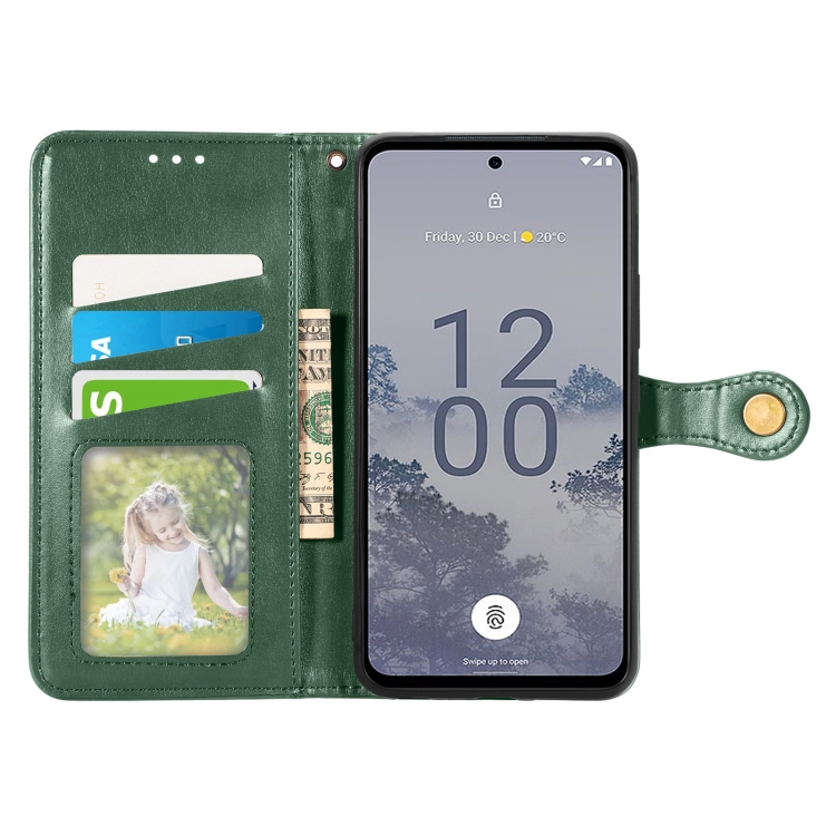 Funda de Cuero para Teléfono Nokia X30 con Hebilla Retro Color Sólido (Verde)