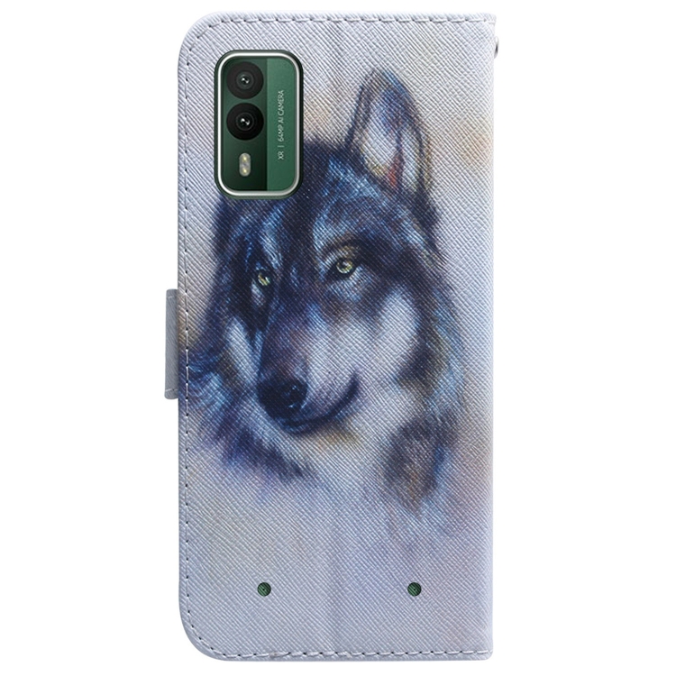 Funda de Cuero con Tapa para Nokia Xr21 Dibujo Lobo Blanco