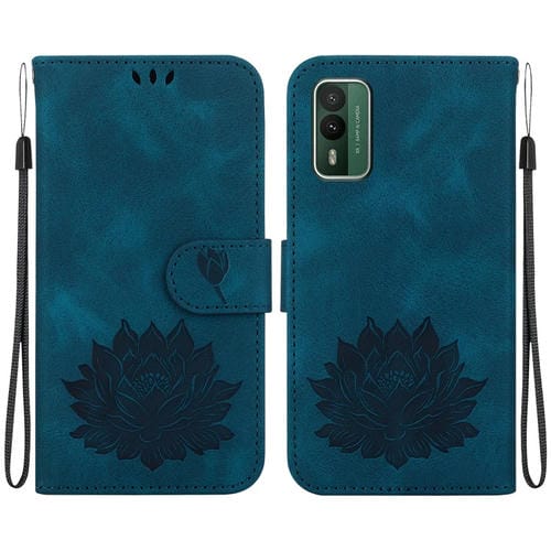 Funda de Cuero para Nokia Xr21 con Relieve de Loto (Azul Oscuro)
