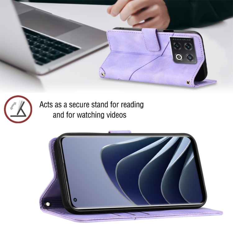 - 1x Estuche para OnePlus 10 Pro 5G de Cuero En Relieve con Tacto de Piel (Púrpura Claro)