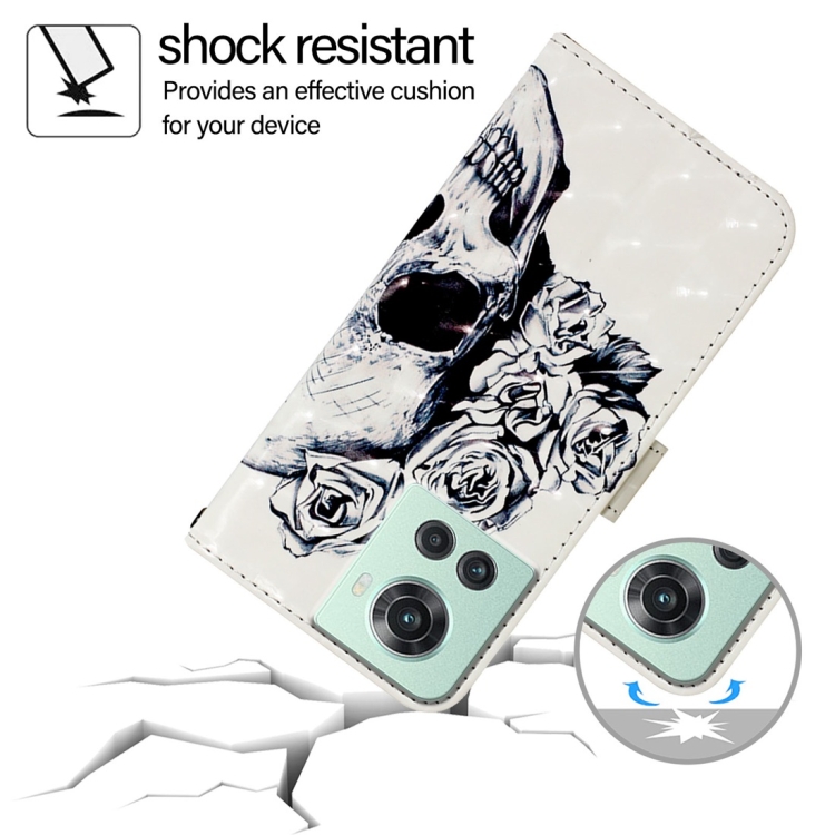 Funda para OnePlus 10R / 10R Prime / Ace de Cuero con Tapa Horizontal y Pintura 3D (Calavera)