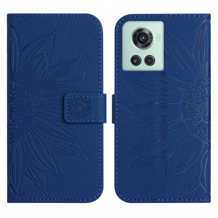 - 1x Funda Flip de Cuero para OnePlus 10R con Cordón y Diseño Sun Flower (Azul Oscuro)