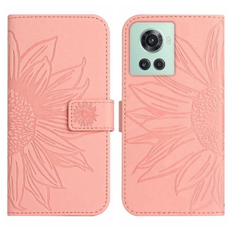 - 1x Funda Flip de Cuero para OnePlus 10R Skin Feel con Cordón y Patrón Girasol (Rosa)