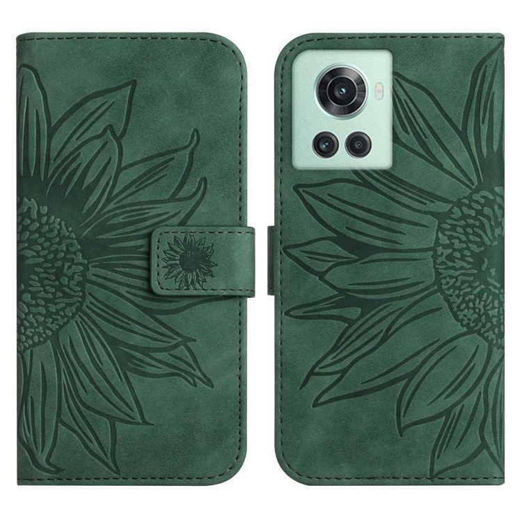 - 1x Funda Flip de Cuero para OnePlus 10R Skin Feel con Cordón y Patrón Sun Flower (Verde)