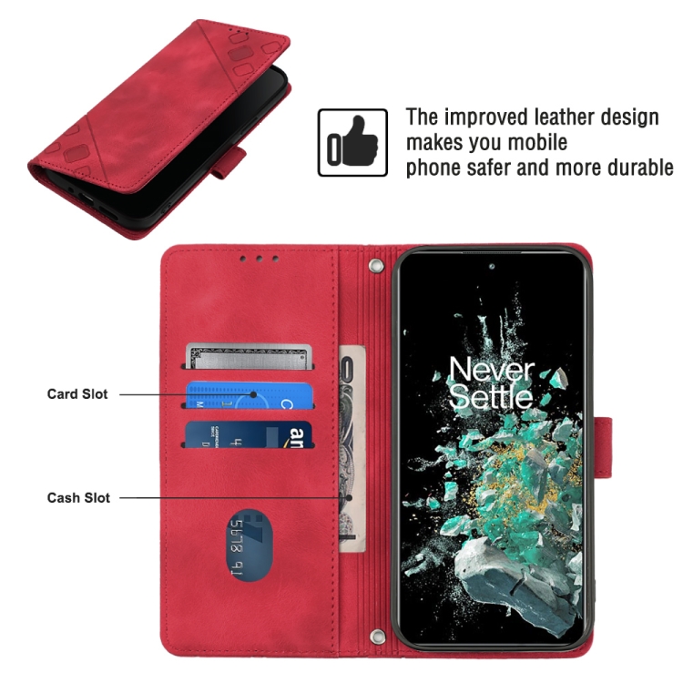 - 1x Estuche para OnePlus 10T 5G de Cuero en Relieve con Tacto de Piel (Rojo)