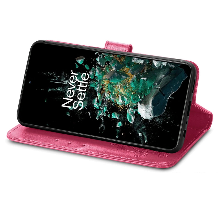Estuche para OnePlus 10T de Cuero con Hebilla en Relieve y Cierre de Cuatro Hojas (Magenta)