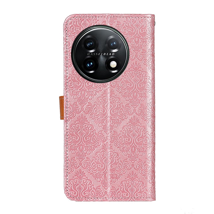- 1x Estuche para OnePlus 11 5G de Cuero con Tapa en Relieve Floral Europeo (Rosa)