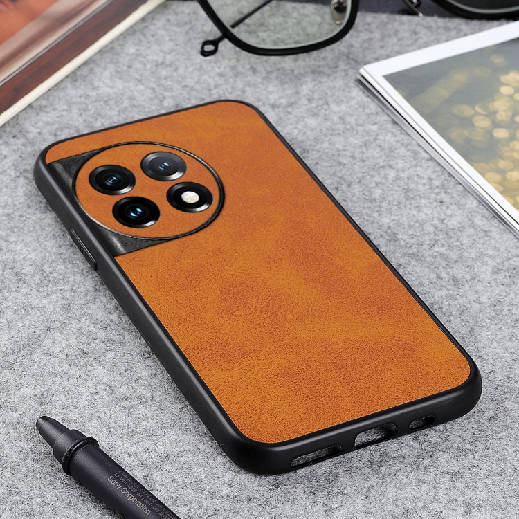 - 1x Estuche para OnePlus 11 5G de PU con textura de becerro y orificio preciso (Marrón)