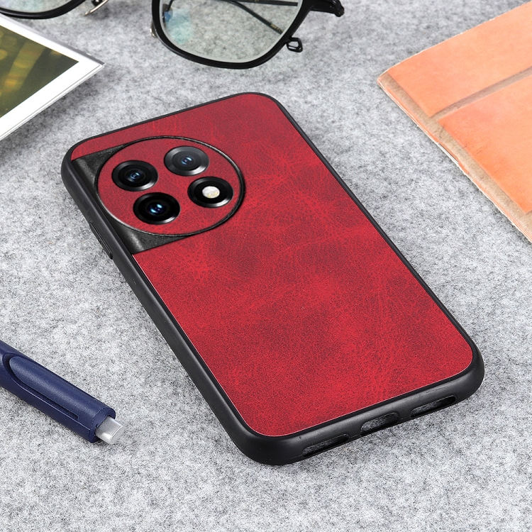 - 1x Estuche para OnePlus 11 5G de PU con Textura de Becerro y Orificio Preciso (Rojo)