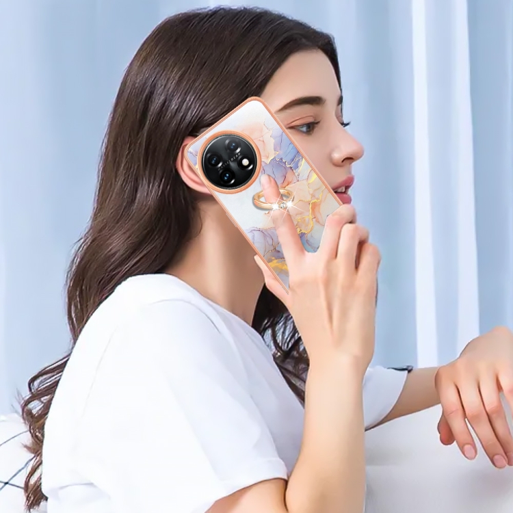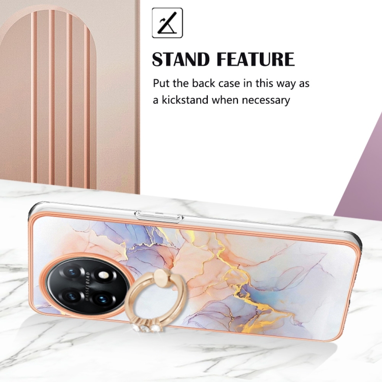 - 1x Funda TPU con Anillo para OnePlus 11 Galvanoplastia IMD (Mármol Blanco)