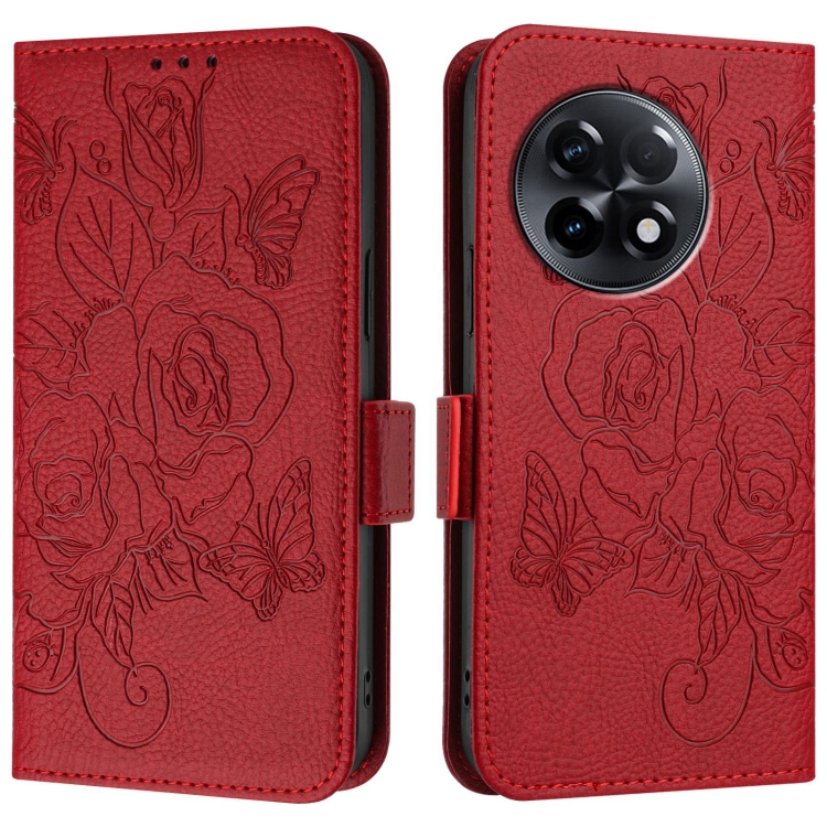 Funda para OnePlus 11R 5G de Cuero Antirrobo RFID con Rosa en Relieve (Rojo)