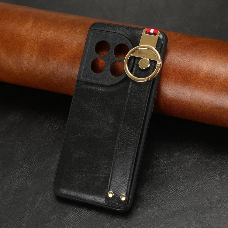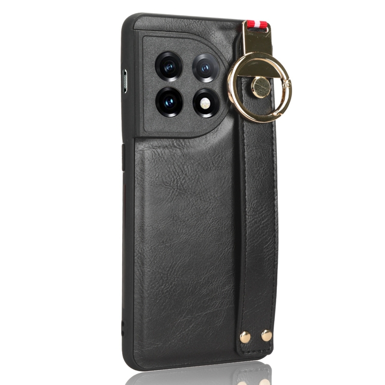 Funda Trasera de Cuero para OnePlus 11R 5G Muñequera (Negro)