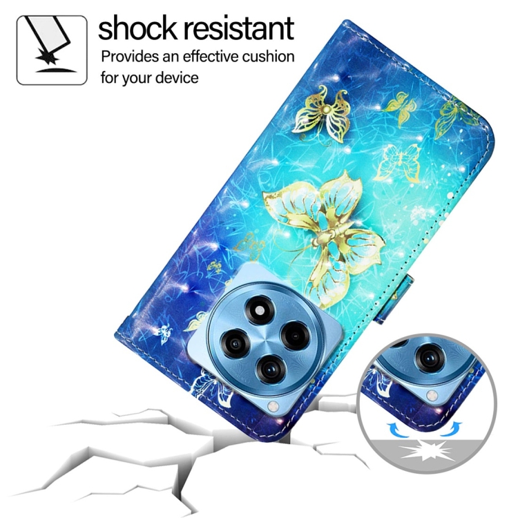 Funda para OnePlus 12R Global 3D Painting de Cuero con Tapa Horizontal (Mariposa Dorada)
