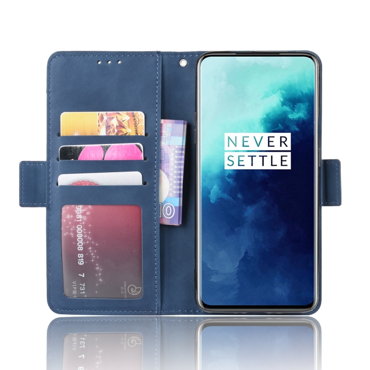 Estuche de Cuero para OnePlus 7T Pro con Patrón de Piel de Becerro y Ranura para Tarjeta (Azul)