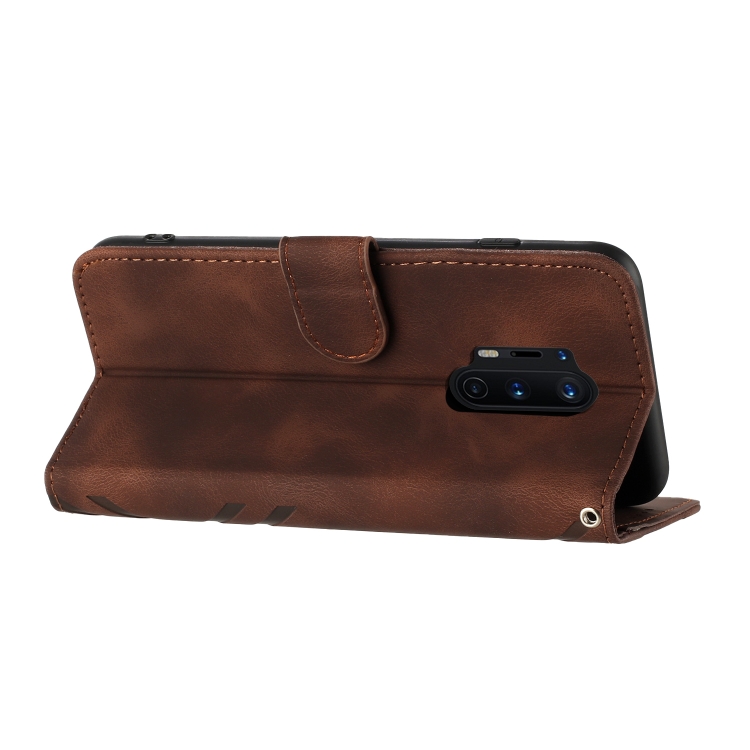 - 1x Funda para OnePlus 8 Pro Skin Feel Leather con patrón Line (Café)