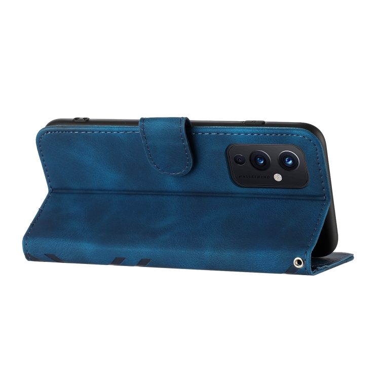 - 1x Funda para OnePlus 9 con patrón lineal Skin Feel de Cuero (Royal Blue)