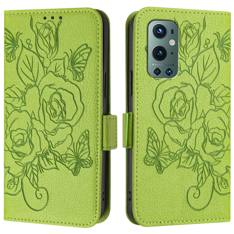 Funda de Cuero Antirrobo RFID para OnePlus 9 Pro con Relieve Rosa (Verde)