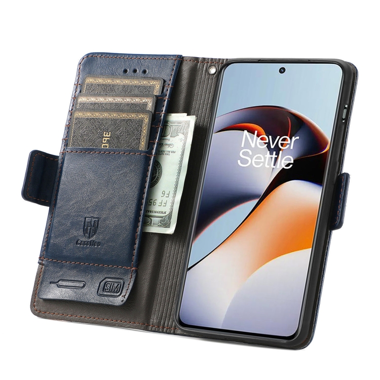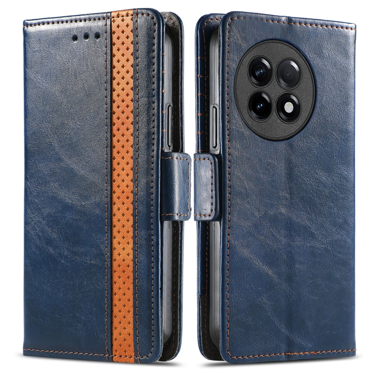 - 1x Funda de Cuero Caseneo para OnePlus Ace 2 con Splicing y Hebilla Magnética Dual (Azul)