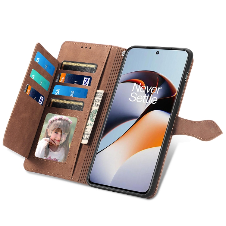 - 1x Estuche para Teléfono OnePlus Ace 2 Cuero con Cremallera y Flores en Relieve (Marrón)