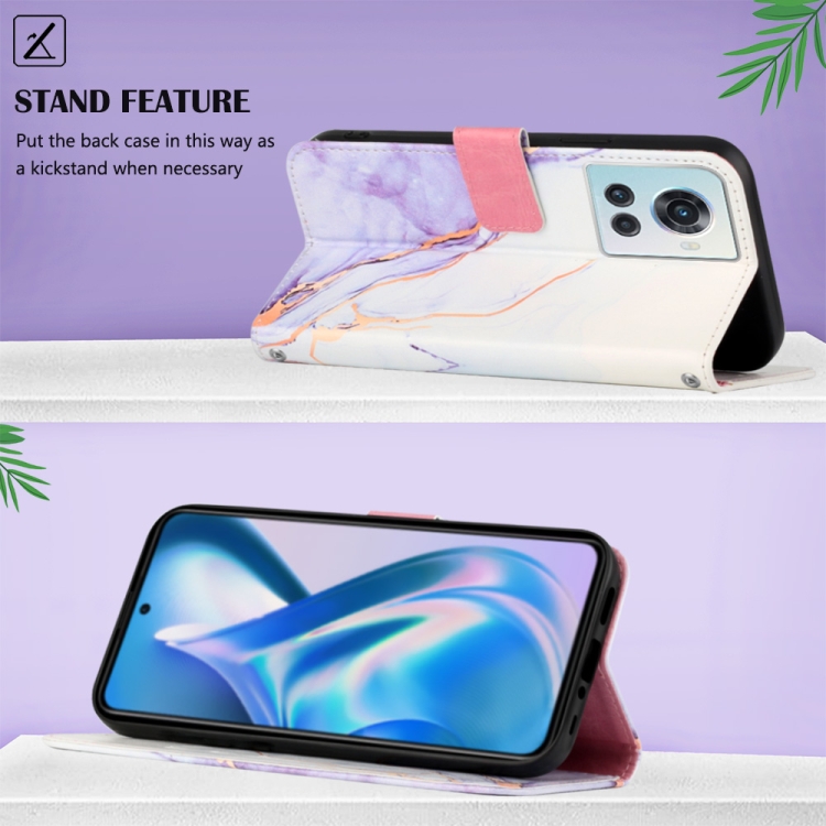 - 1x Funda Flip de Cuero para OnePlus Ace Marble Pattern (White Purple) LS006