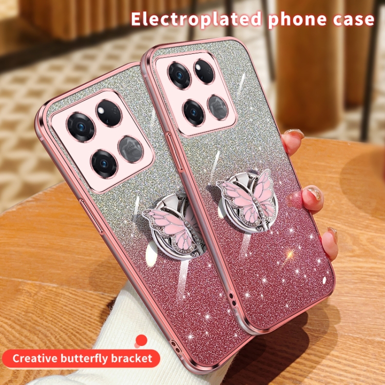 Funda TPU para OnePlus Ace Racing con Soporte de Mariposa y Brillo Degradado (Rosa)