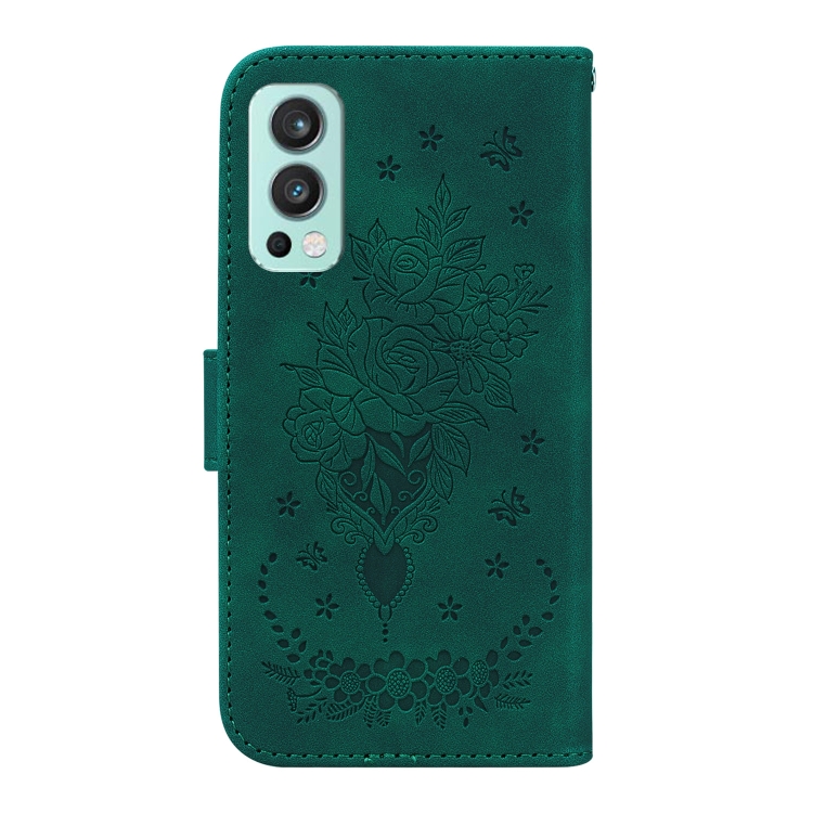 - 1x Funda para OnePlus Nord 2 5G Butterfly Rose en Relieve de Cuero (Verde)