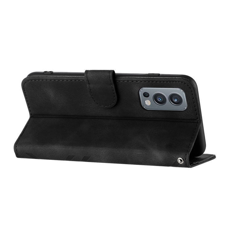 - 1x Funda para OnePlus Nord 2 5G con patrón lineal Skin Feel Leather (Negro)