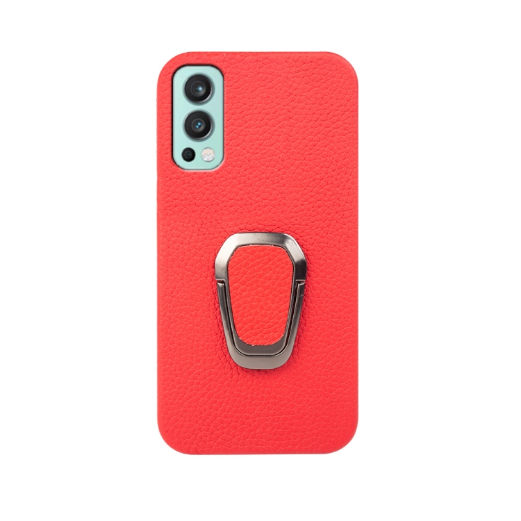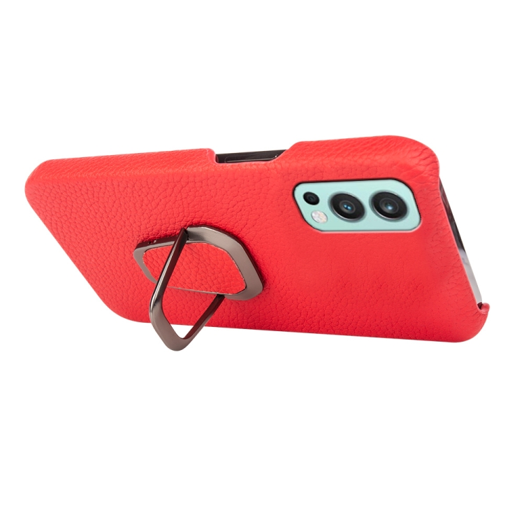 - 1x Funda de Teléfono OnePlus Nord 2 5G con Ring Holder y Cuero Genuino (Rojo)
