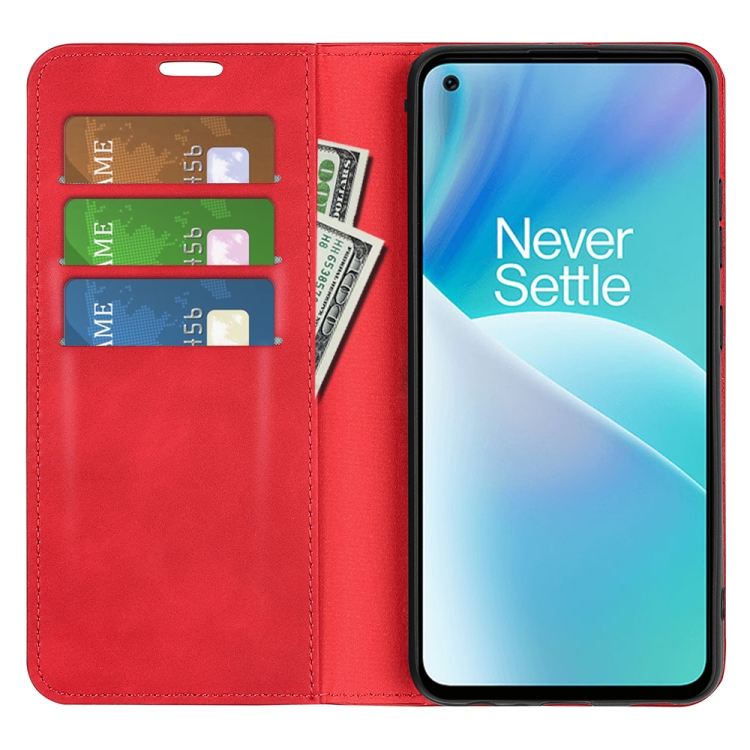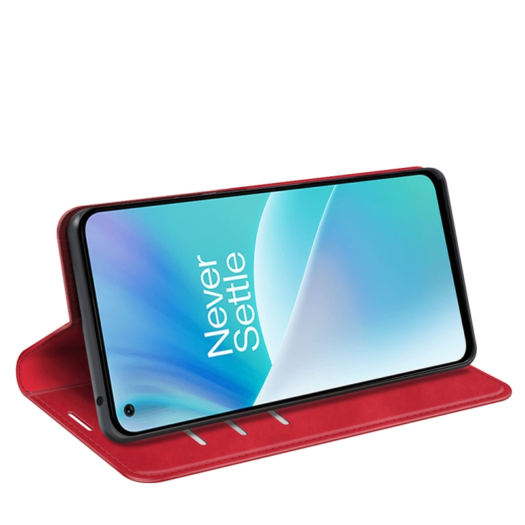 - 1x Funda Flip Cuero Retro-Skin con Succión para OnePlus Nord 2T 5G (Rojo)