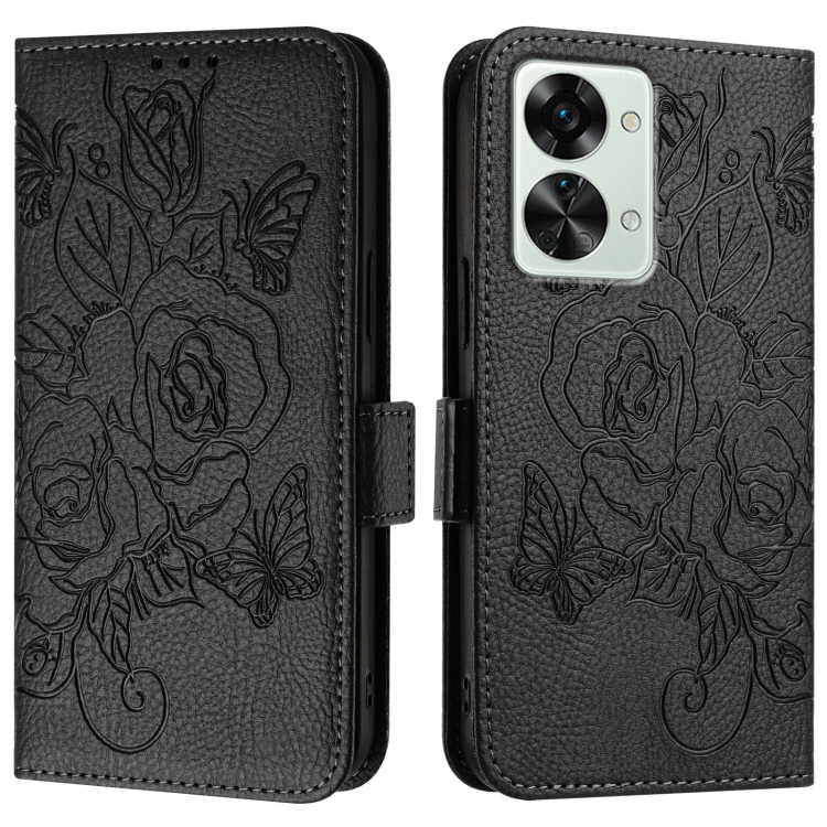 Funda de Cuero Antirrobo RFID para OnePlus Nord 2T con Relieve Rosa (Negro)