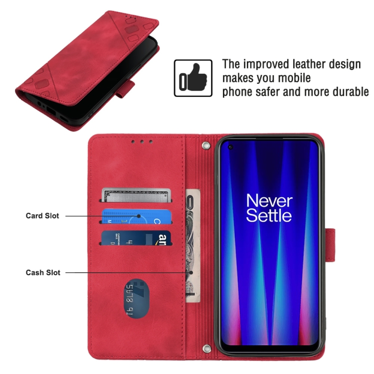 Estuche para OnePlus Nord Ce 2 5G de Cuero en Relieve con Tacto de Piel (Rojo)