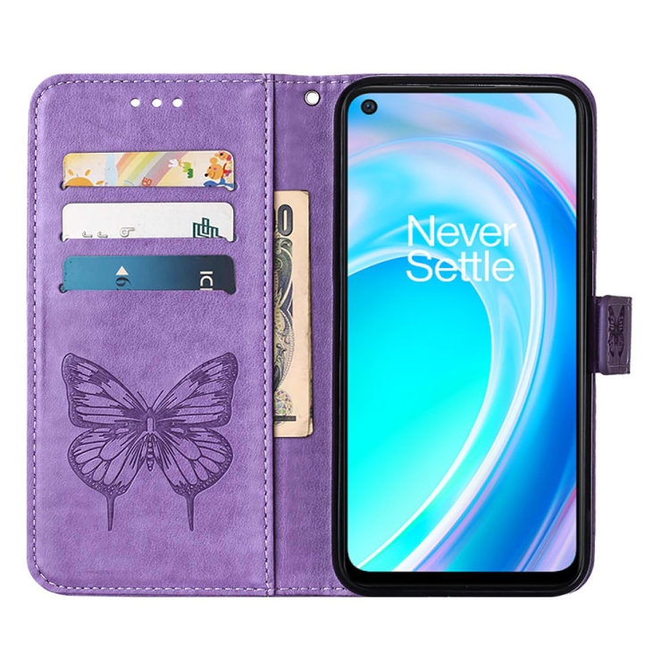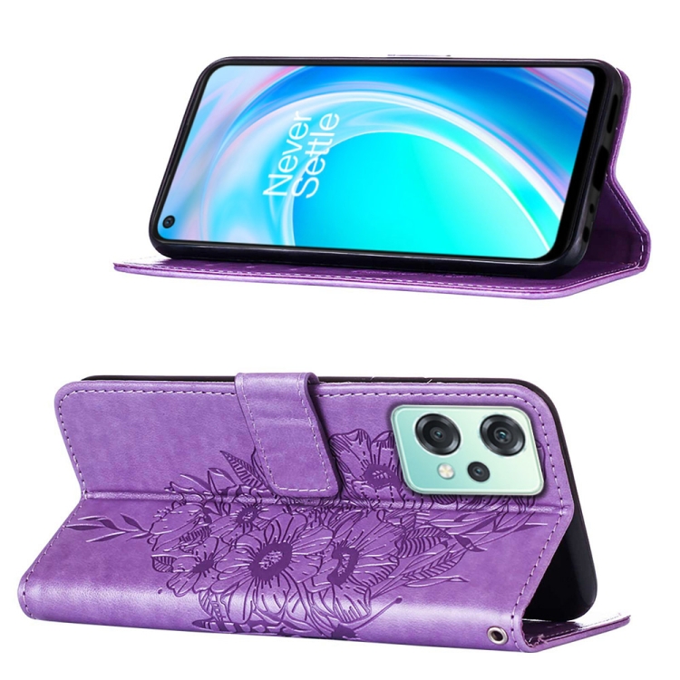 - 1x Funda de Cuero para OnePlus Nord CE 2 Lite 5G con Mariposa en Relieve (Púrpura)
