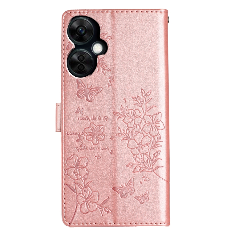 Funda para OnePlus Nord Ce 3 Lite 5G de Cuero con Relieve Flor y Mariposa (Oro Rosa)