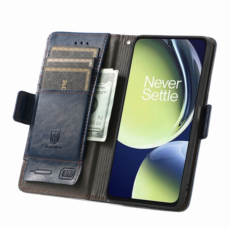- 1x Funda de Cuero Caseneo Splicing con Hebilla Magnética Dual para OnePlus Nord CE 3 Lite (Azul)