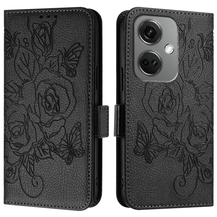 Funda de Cuero Antirrobo RFID para OnePlus Nord CE3 5G con Relieve Rosa (Negro)