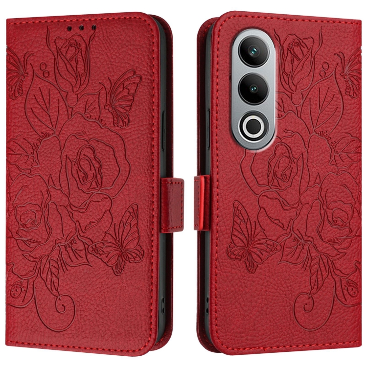 Funda de Cuero Antirrobo RFID para OnePlus Nord CE4 5G con Relieve (Rojo)