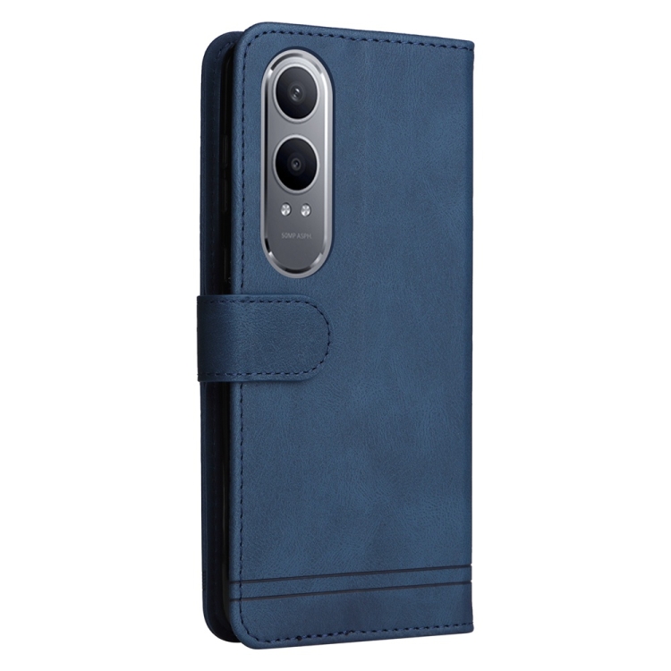 Funda de Cuero Skin Feel Life Tree para OnePlus Nord Ce4 Lite con Botón de Metal (Azul)