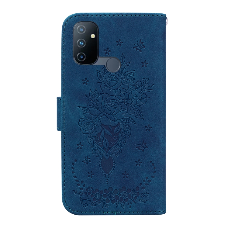 - 1x Funda para OnePlus Nord N100 Butterfly Rose Foothip en relieve de Cuero (Azul)
