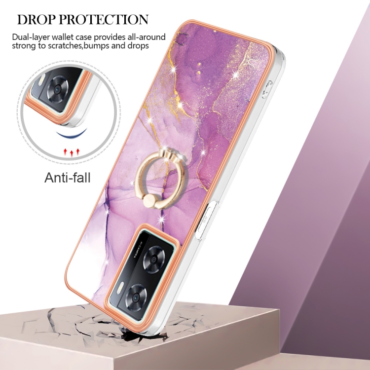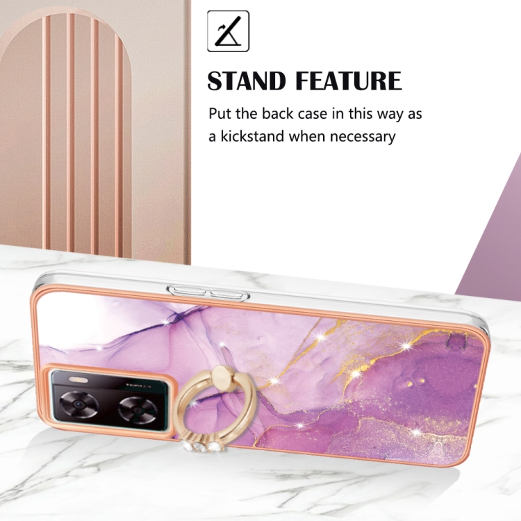 Funda TPU para OnePlus Nord N300 con Galvanoplastia Mármol y Soporte para Anillo (Púrpura)