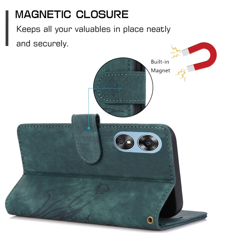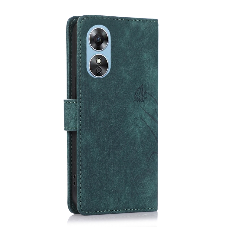 Para Oppo A17 / A17K Funda para Teléfono de Cuero con Relieve de Mariposa Orquídea (Verde)