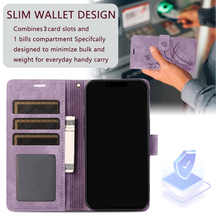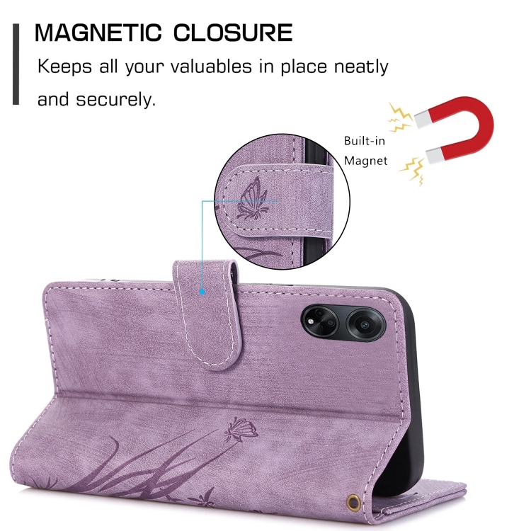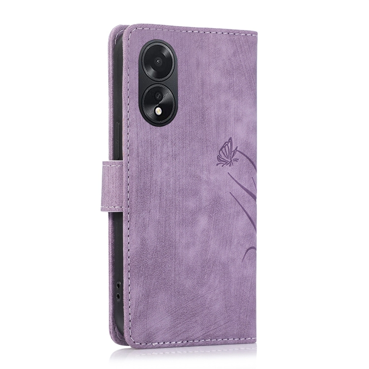 Para Oppo A18 / A38 Funda para Teléfono de Cuero con Relieve de Mariposa Orquídea (Púrpura)