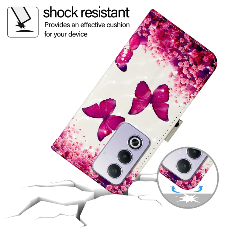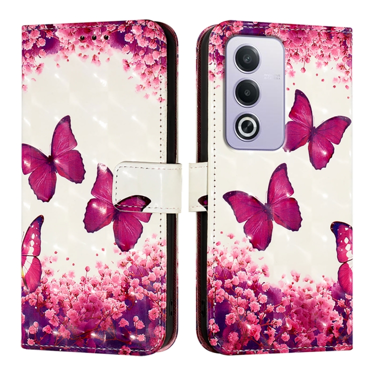 Para Oppo A3 Pro 5G Global 3D Painting Funda de Cuero con Tapa Horizontal para Teléfono (Mariposa Rosa)