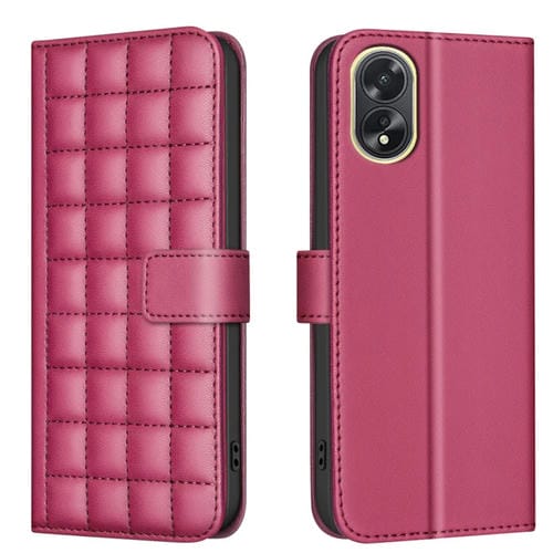 Para Oppo A38 4G / A18 4G Funda de Cuero para Teléfono con Textura Cuadrada (Rojo)
