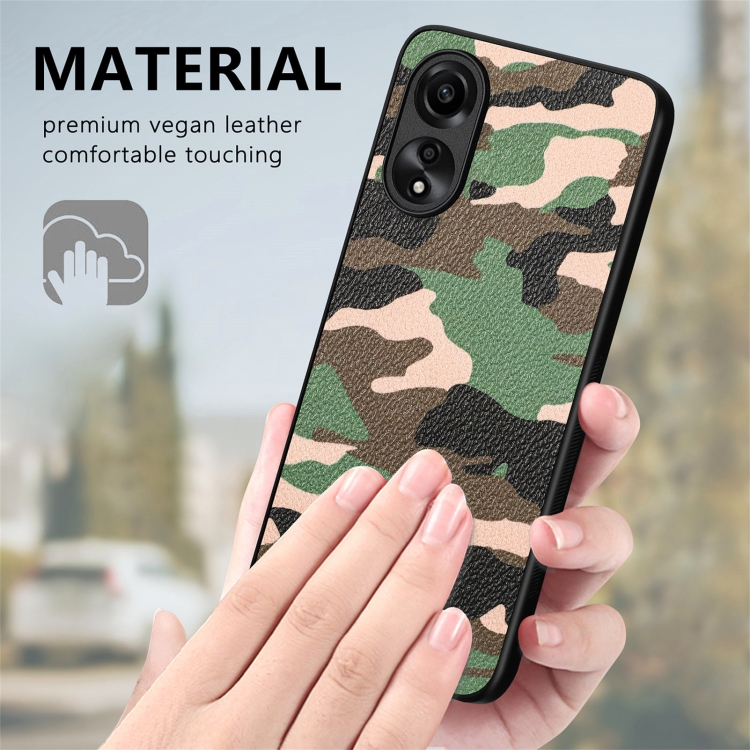Para Oppo A38 4G Funda Trasera de Cuero de Camuflaje Retro (Marrón)