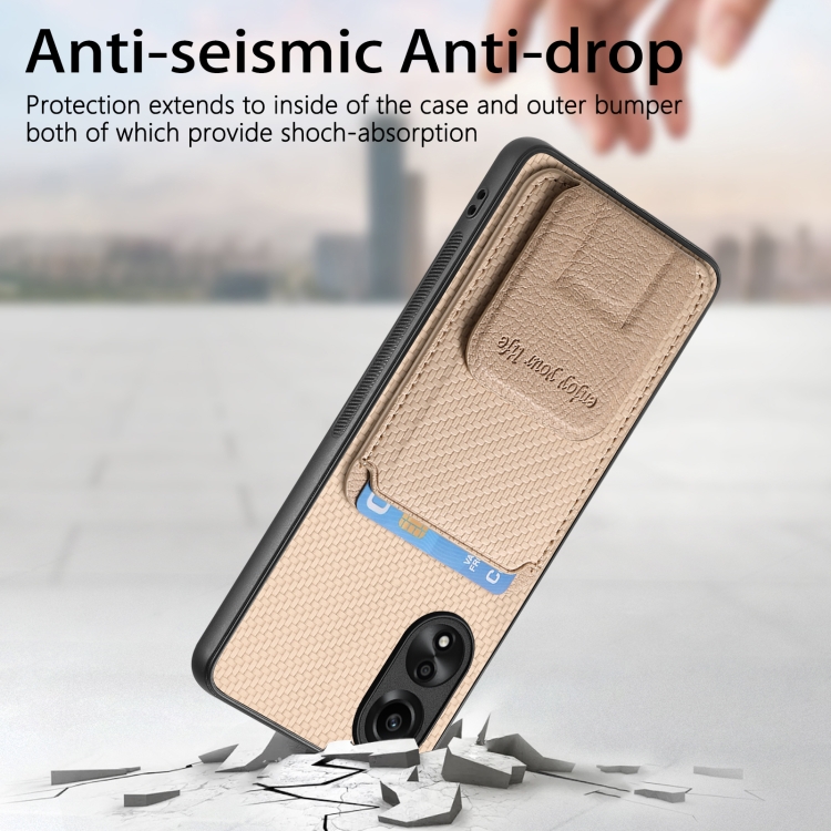 Para Oppo A52 / A72 / A92 Funda para Teléfono con Soporte Plegable y Bolsa para Tarjetas de Fibra de Carbono (Caqui)