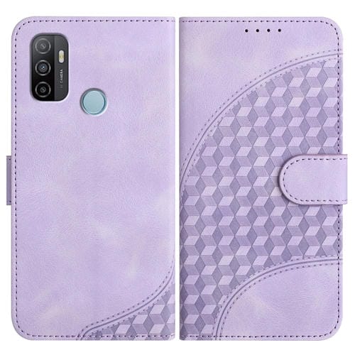 Para Oppo A53 4G / A32 4G / A53S 4G / A33 4G Yx0060 Funda de Cuero para Teléfono con Relieve de Cabeza de Elefante y Cordón (Púrpura Claro)