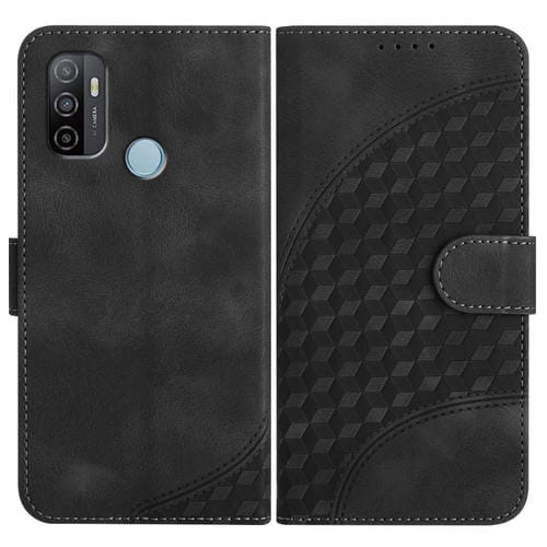 Para Oppo A53 4G / A32 4G / A53S 4G / A33 4G Yx0060 Funda de Cuero para Teléfono con Relieve y Cabeza de Elefante con Cordón (Negro)
